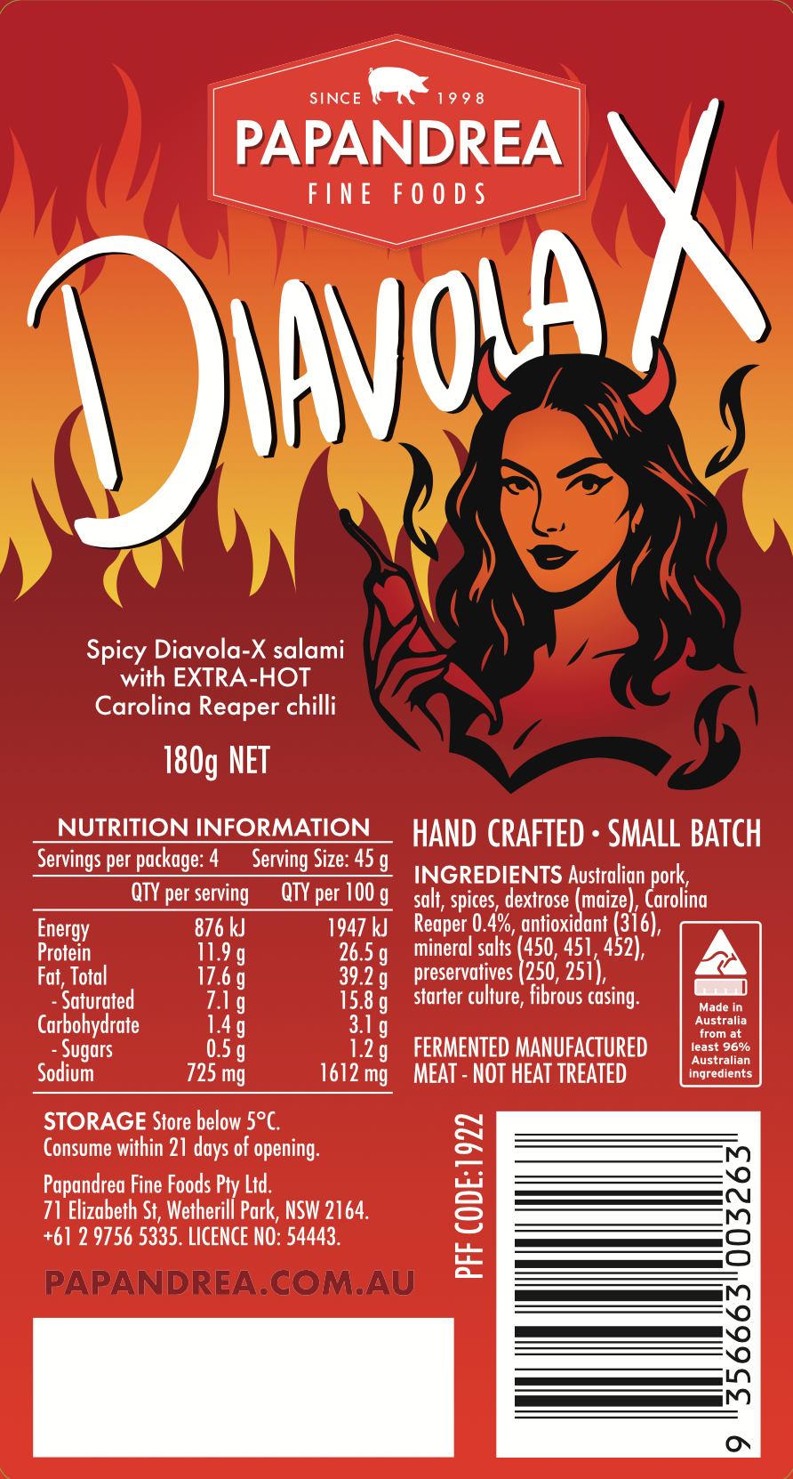 Spicy "Diavola-X" salami with EXTRA-HOT Carolina Reaper Chilli.