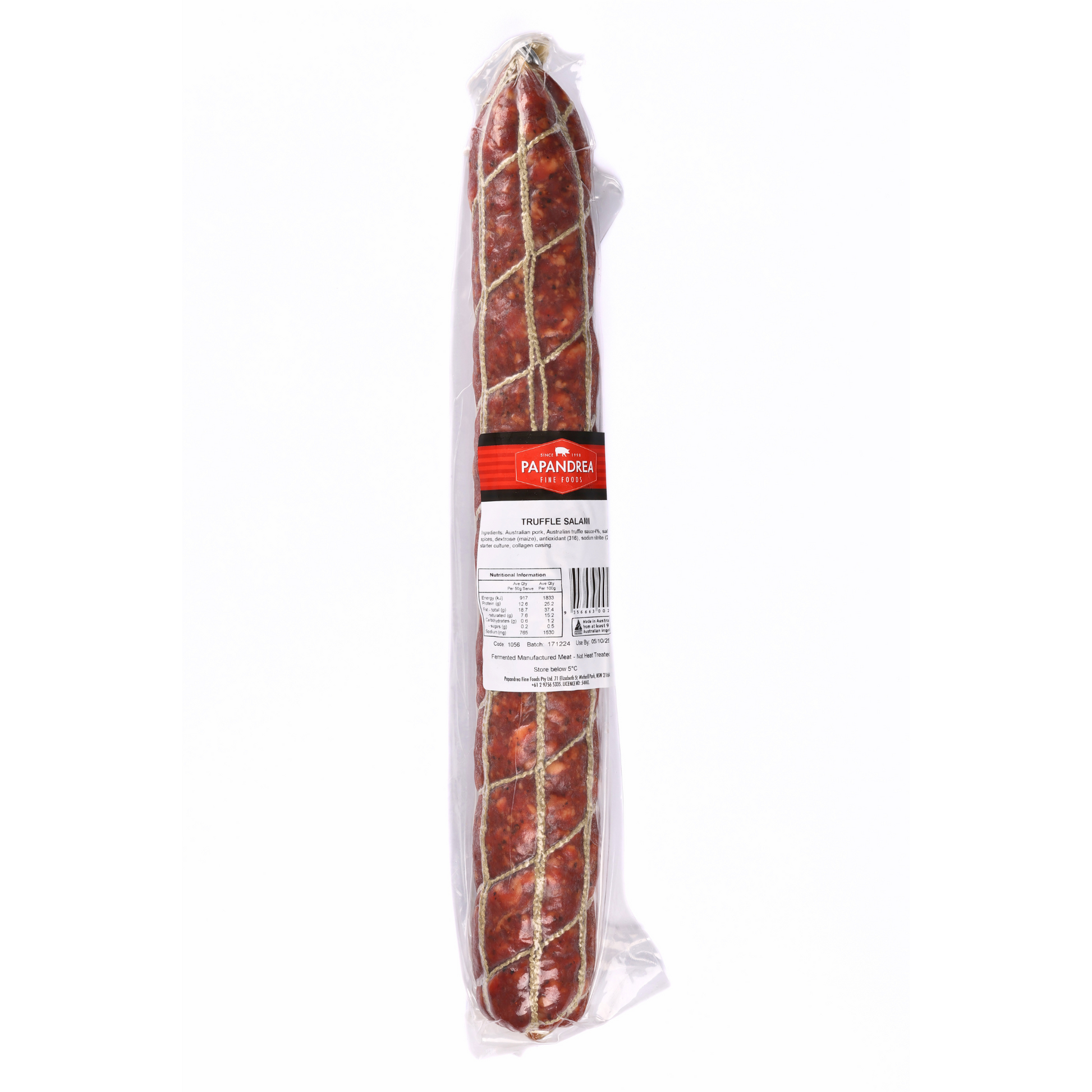 Australian Pork (94%), Truffle Sauce (2.7%), Salt, Dextrose (Maize), Spices, Antioxidant (316), Sodium Nitrite (250), Starter Culture