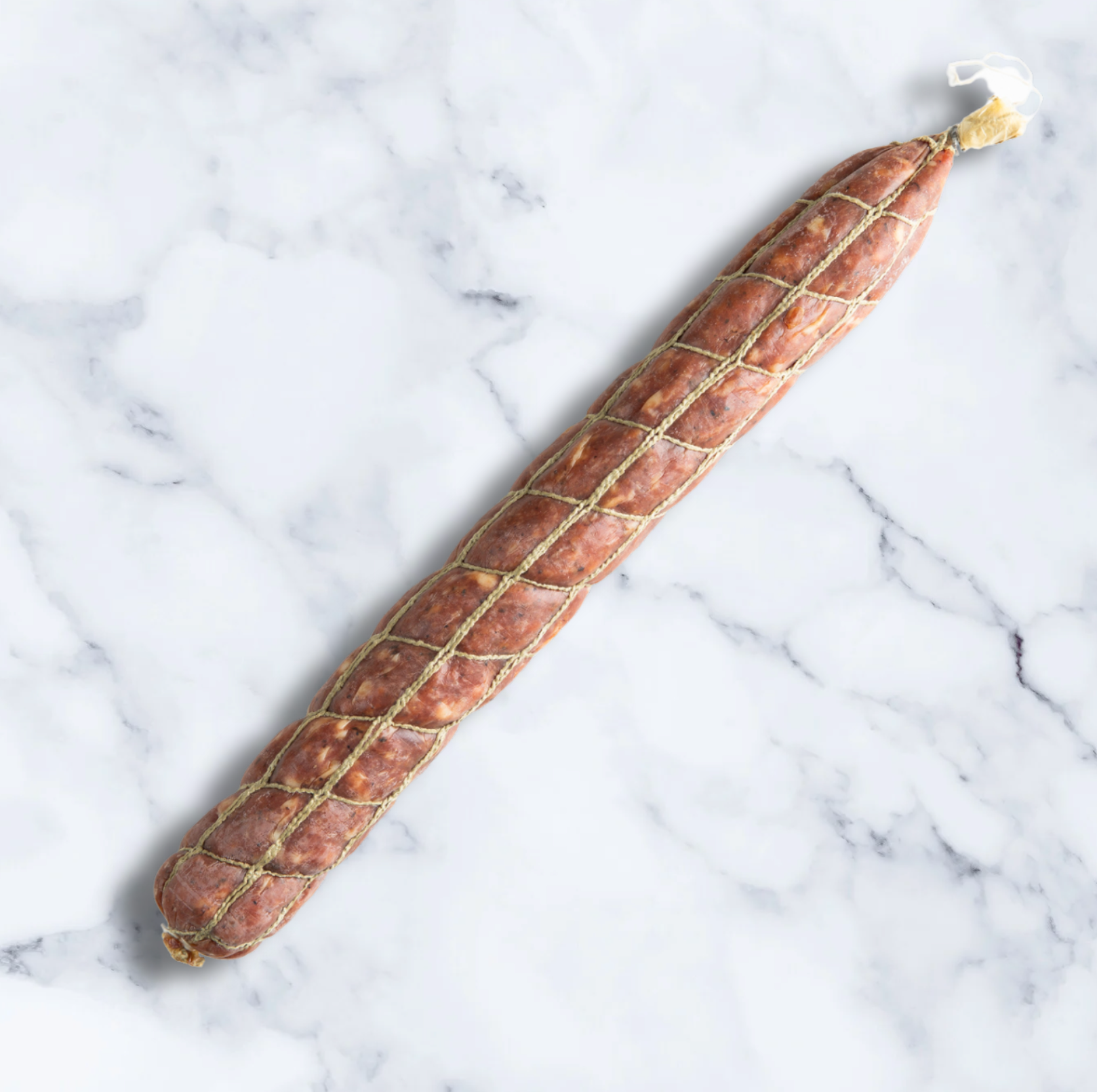 Sold as a whole salami in a beautiful netted casing, approximately 900g.